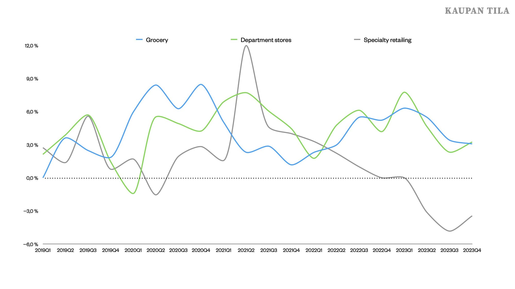 Erikoiskaupan puolella on kuitenkin yksi osa-alue, joka on onnistunut kasvamaan ruokakaupan tavoin: tavaratalot.