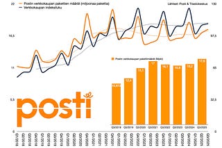 Suomen suurimman verkkokaupan pakettien kuljettajan Posti Group Oyj sekä puhtaiden kotimaisten verkkokauppojen luvut (Tilastokeskus - Statistics Finland…