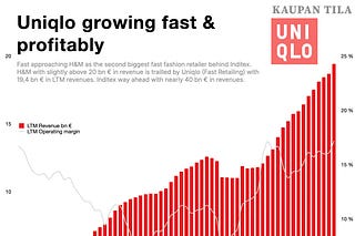 Japanilainen fast fashion -yhtiö, Uniqlo-brändistä tunnettu, Fast Retailing on kasvanut jo pitkään erittäin vahvasti ja kannattavasti.