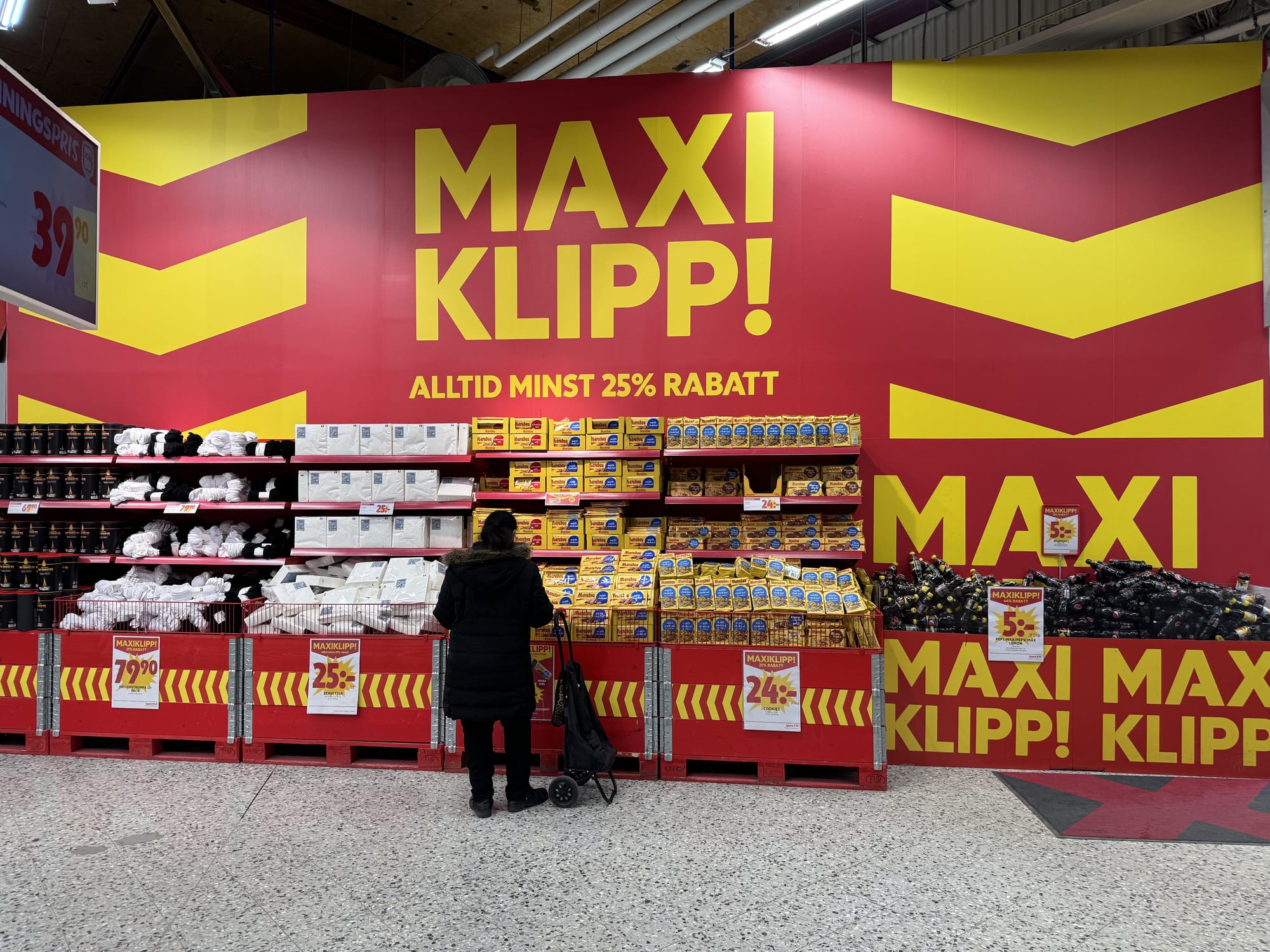 Hinta olikin hurjasti esillä, etenkin ICA Maxeissa. Toinen huomio ja ero suomalaiseen ruokakauppaan oli, että itsepalveluskannereita on jokaisessa kaupassa. Karkkia on myös vähemmän, karkkipussit ovat pienempiä ja osastot ovat vaatimattomampia. Sen sijaan sipsejä on paljon ja ne ovat isosti esillä lattiasta kattoon.