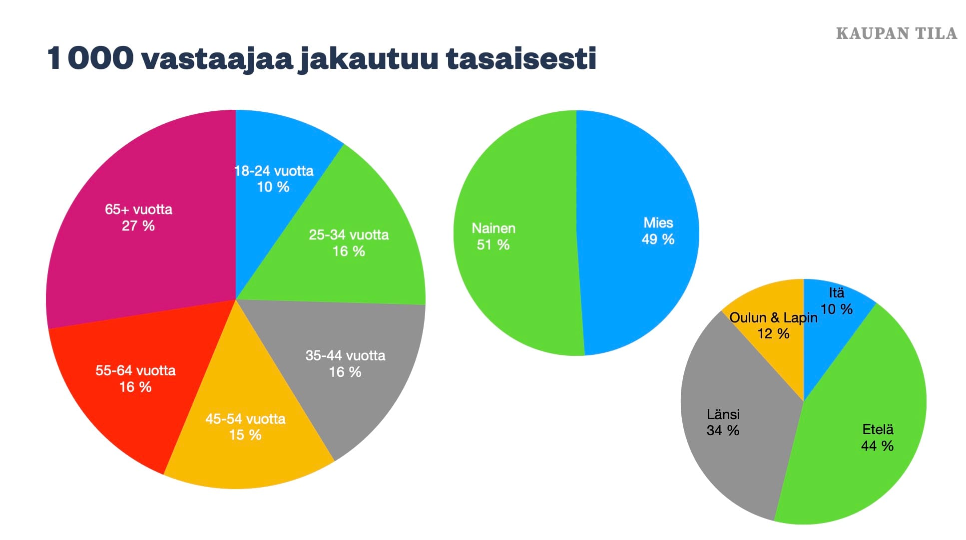 Siksi kyselyn tuloksien tulkinnassa on hyvä tunnistaa, että tulokset kertovat siitä miten suomalaiset mieltävät kaupan toimijat, ei suorista euromääräisistä mittasuhteista.
