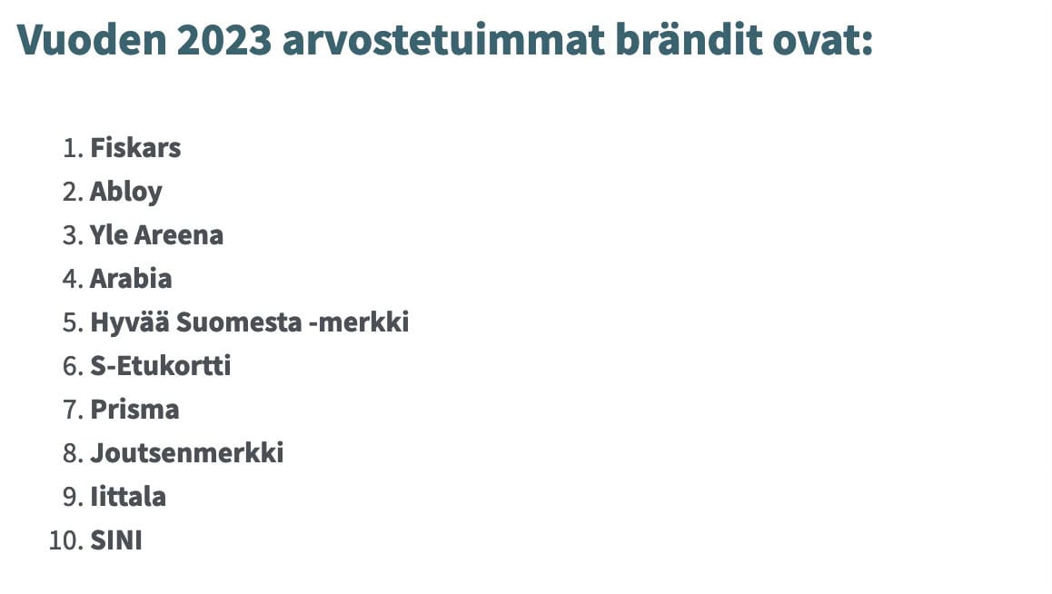 Kysymyksen taustalla ovat erilaiset asiakastutkimukset, joiden mukaan S-ryhmän brändit, etenkin S-Etukortti ja Prisma, ovat asiakkaiden eniten arvostamien brändien joukossa. Muun muassa Taloustutkimuksen “Arvostetuimmat brändit” -tutkimuksessa S-ryhmä on pärjännyt hyvin.