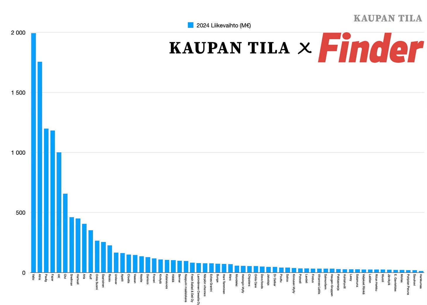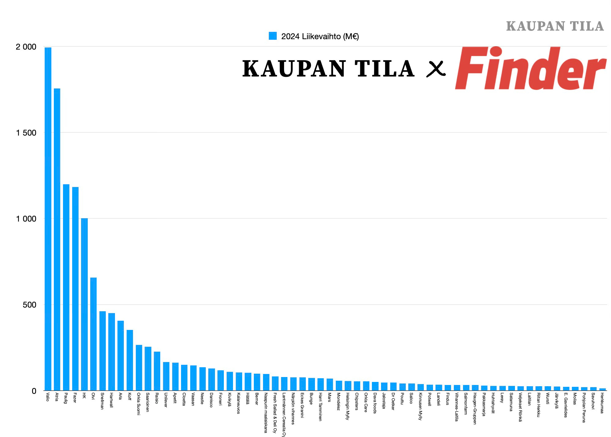 Kasvu on hyvin merkittävää ja kertoo tilanteen merkittävästi paranemisesta teollisuuden näkökulmasta. Näiden yritysten yhteenlaskettu liikevaihto oli 11,5 miljardia euroa. Elintarviketeollisuuden liiton (ETL) mukaan vuonna 2023 koko toimialan yhteenlaskettu liikevaihto oli hieman alle 14 miljardia euroa. Listauksen suuret yritykset siis antavat varsin hyvin suuntaviivoja koko toimialasta.