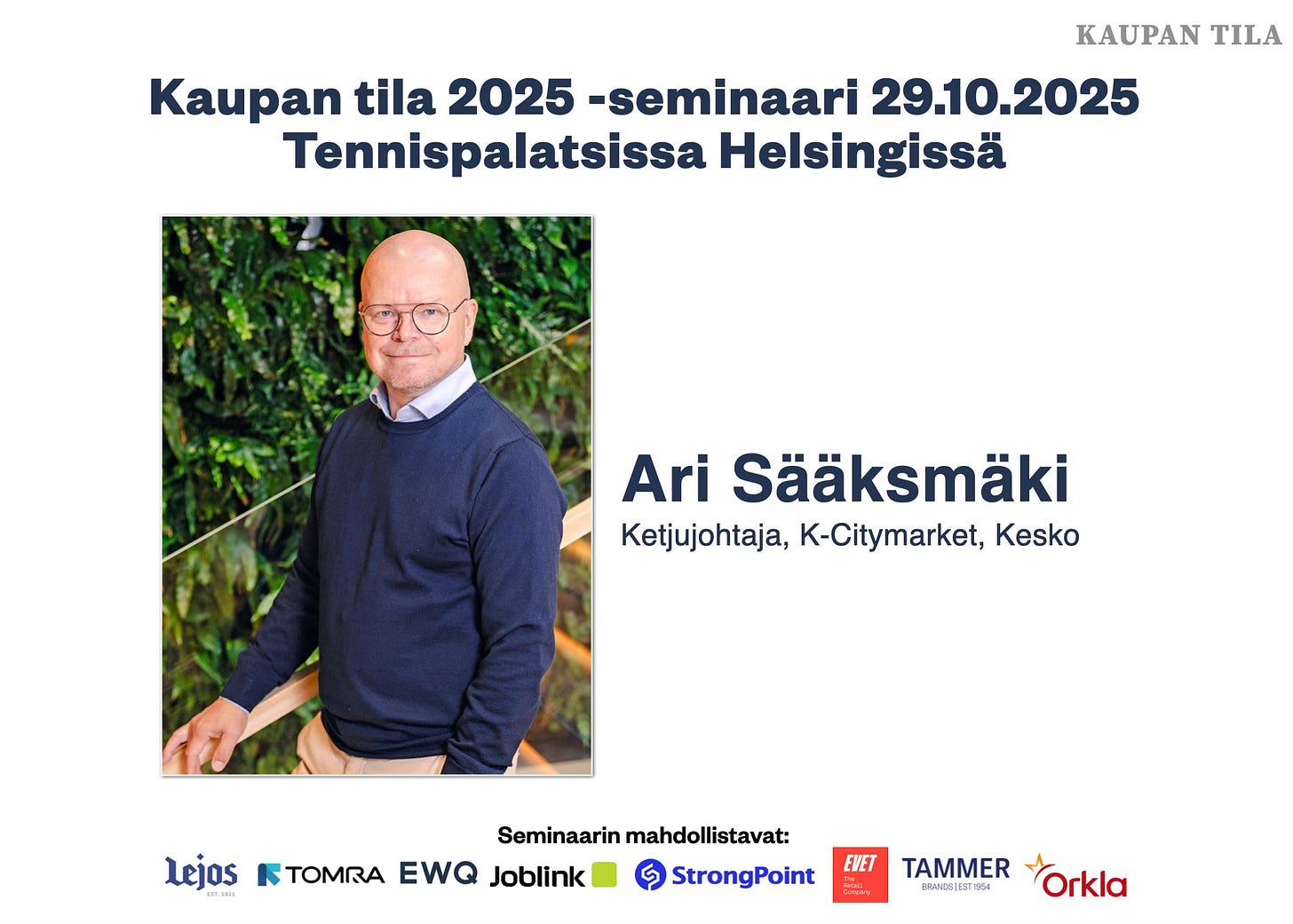 K-Citymarketin ketjujohtaja Ari Sääksmäki tulee Kaupan tila -seminaariin kertomaan miten ketju uudistuu ja muuttuu tiukassa kilpailutilanteessa.