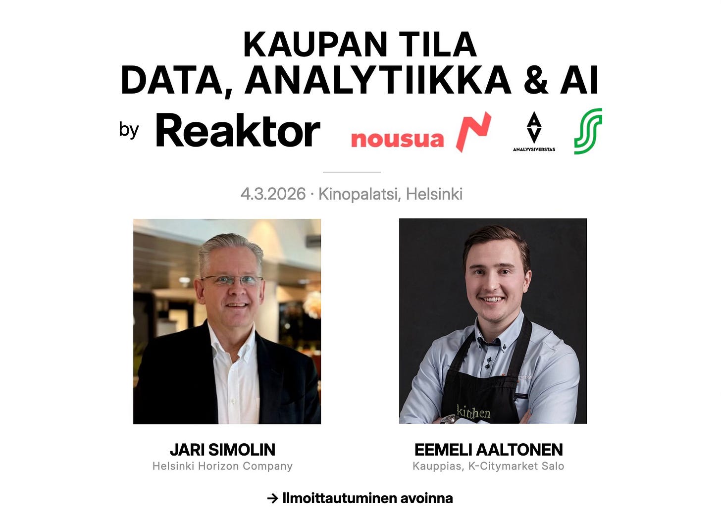 📍 Kaupan Tila Data, Analytiikka & AI – by Reaktor, Nousua, Analyysiverstas & S-Data