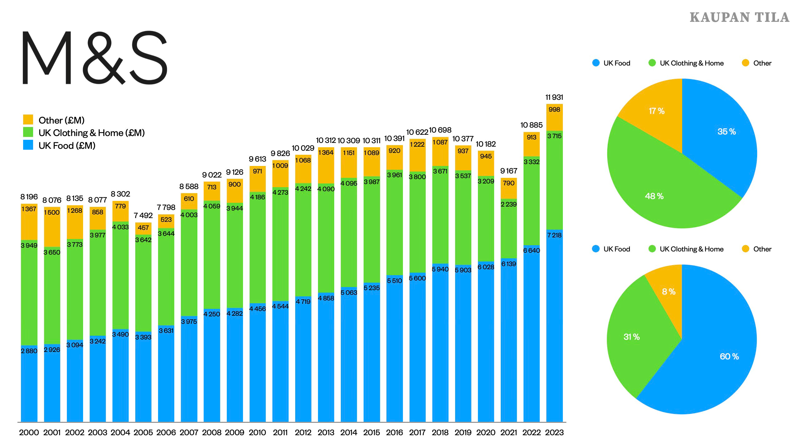 Marks & Spencerin käänne on erityisen kiinnostava, koska yhtiö on viimeiset parikymmentä vuotta pyrkinyt pääsemään takaisin kulta-aikojensa loistoon. Sitten vuoden 1997 romahduksen, yhtiö on enemmän tai vähemmän kulkenut haasteista toiseen. Viime vuosina Englannissa on alkanut keskustelu siitä, että M&S:n ote alkaisi pikku hiljaa palaamaan.