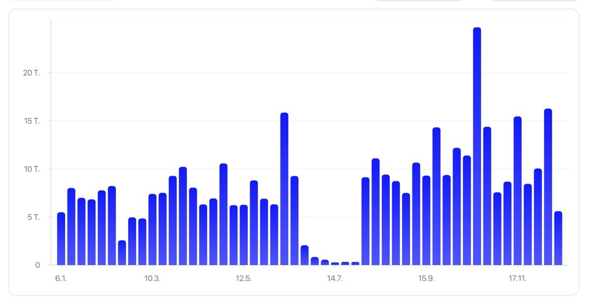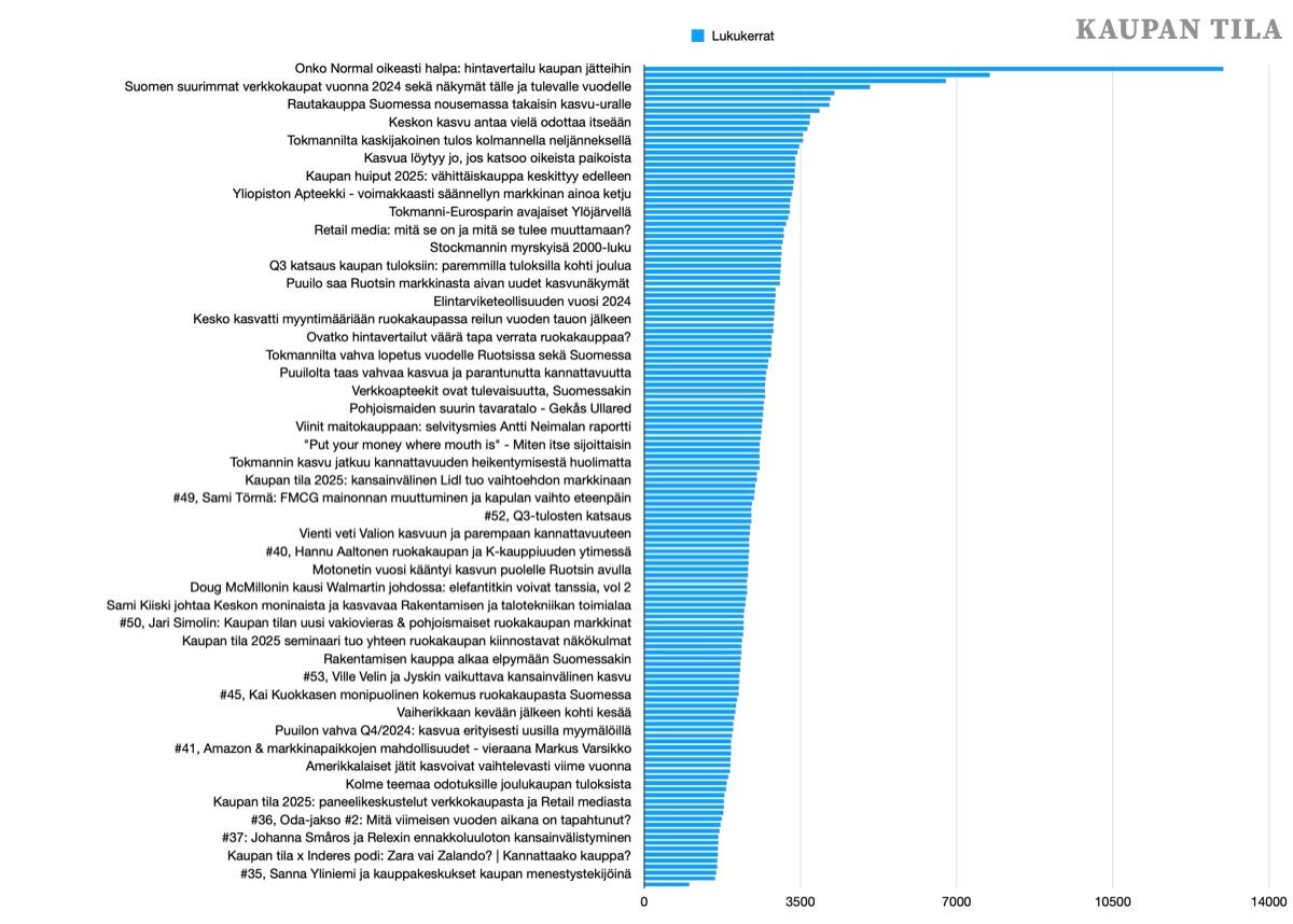 Kasvu tuli yhtäältä muutamien erityisen suosittujen kirjoitusten osalta, mutta erityisesti liikenteen yleisenä kasvun. Siinä missä vuonna 2024 oli viisi juttua, jotka keräsivät yli 3 000 lukukertaa, tänä vuonna miltei 40 juttua pääsivät tuolle tasolle.