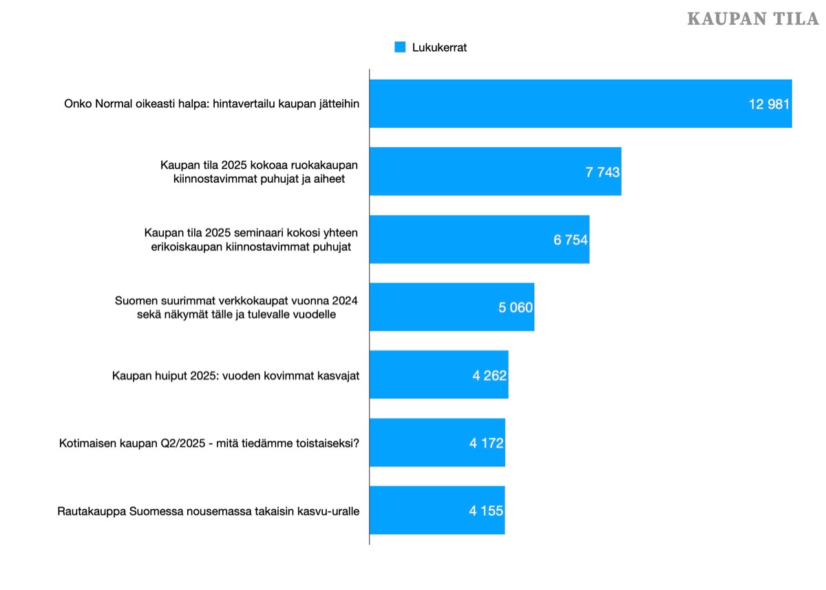 Toiseksi ja kolmanneksi suosituimmat artikkelit olivat Kaupan Tila -seminaareihin liittyviä kirjoituksia.