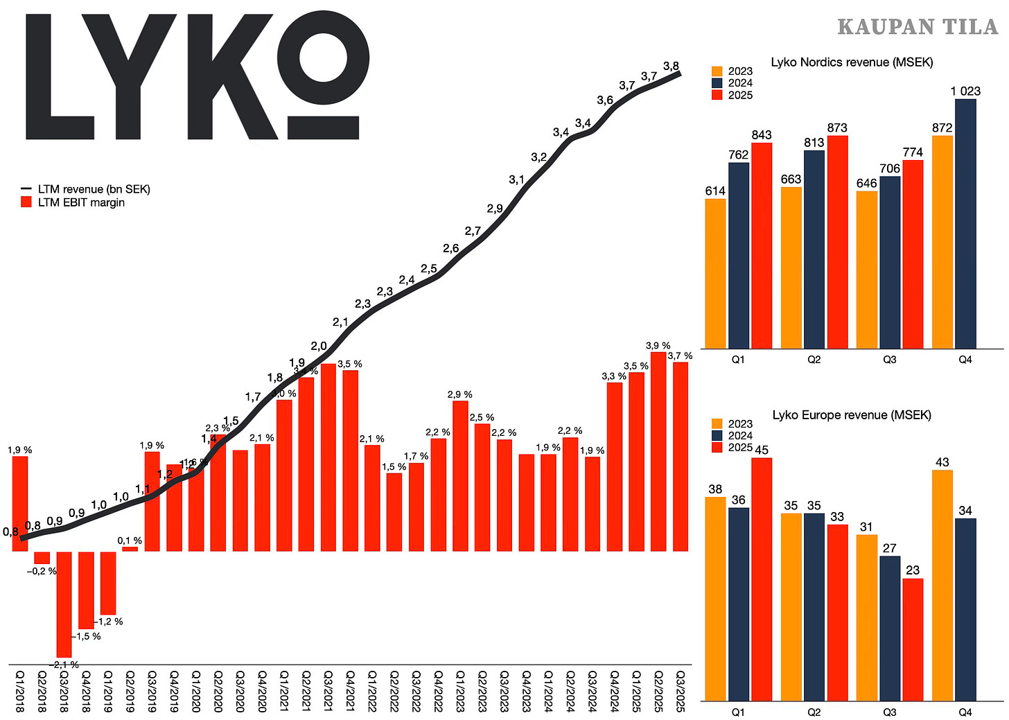 Jotain Lykon kasvusta kertoo se, että viimeisen reilun vuoden aikana yhtiön kasvu on ensimmäistä kertaa tippunut yksinumeroiseksi. Kasvu on edelleen silti vahvaa, ja tapahtuu kannattavasti.