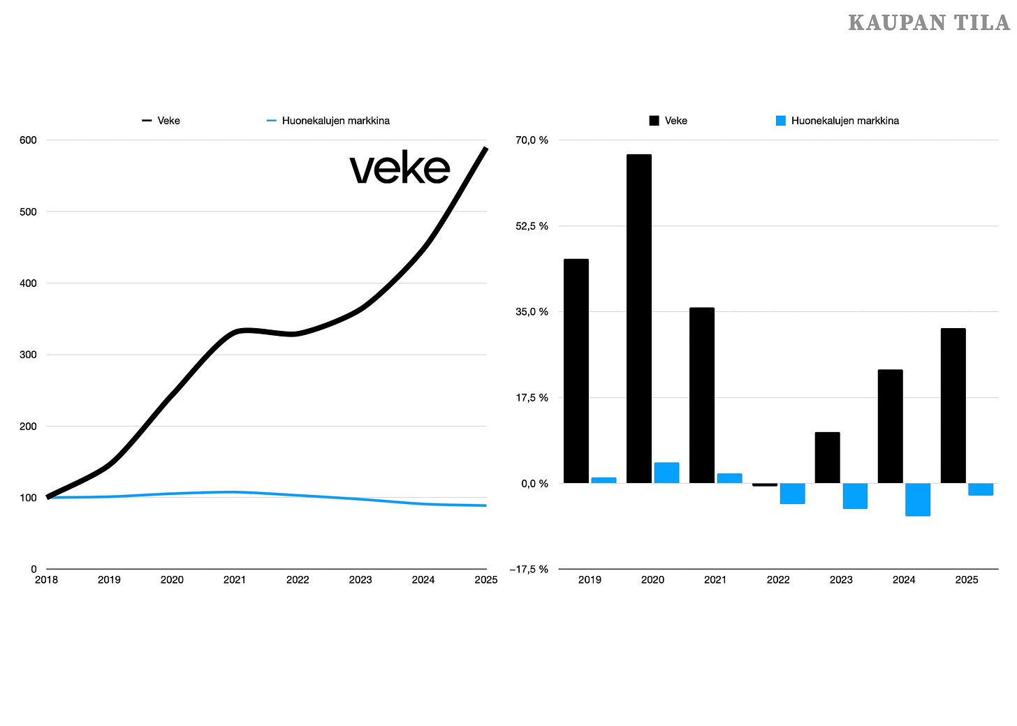 Tämän kirjoituksen innoittajana on erityisesti huonekalukauppa. Samaan aikaan kun perinteisiä ketjuja, kuten Askoa ja Sotkaa, asetettiin konkurssiin, haastaja Veke raportoi huimista kasvuluvuista – vieläpä toista vuotta peräkkäin. Vielä vuosituhannen alussa Asko ja Sotka hallitsivat suomalaista huonekalukauppaa yhdessä juuri yrityssaneerauksesta selvinneen Iskun kanssa.