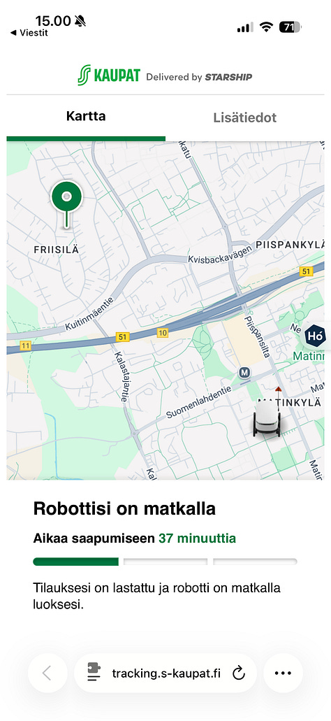 Robotti saapui naapurimme pihalle 53 minuuttia keräilyn valmistumisen jälkeen