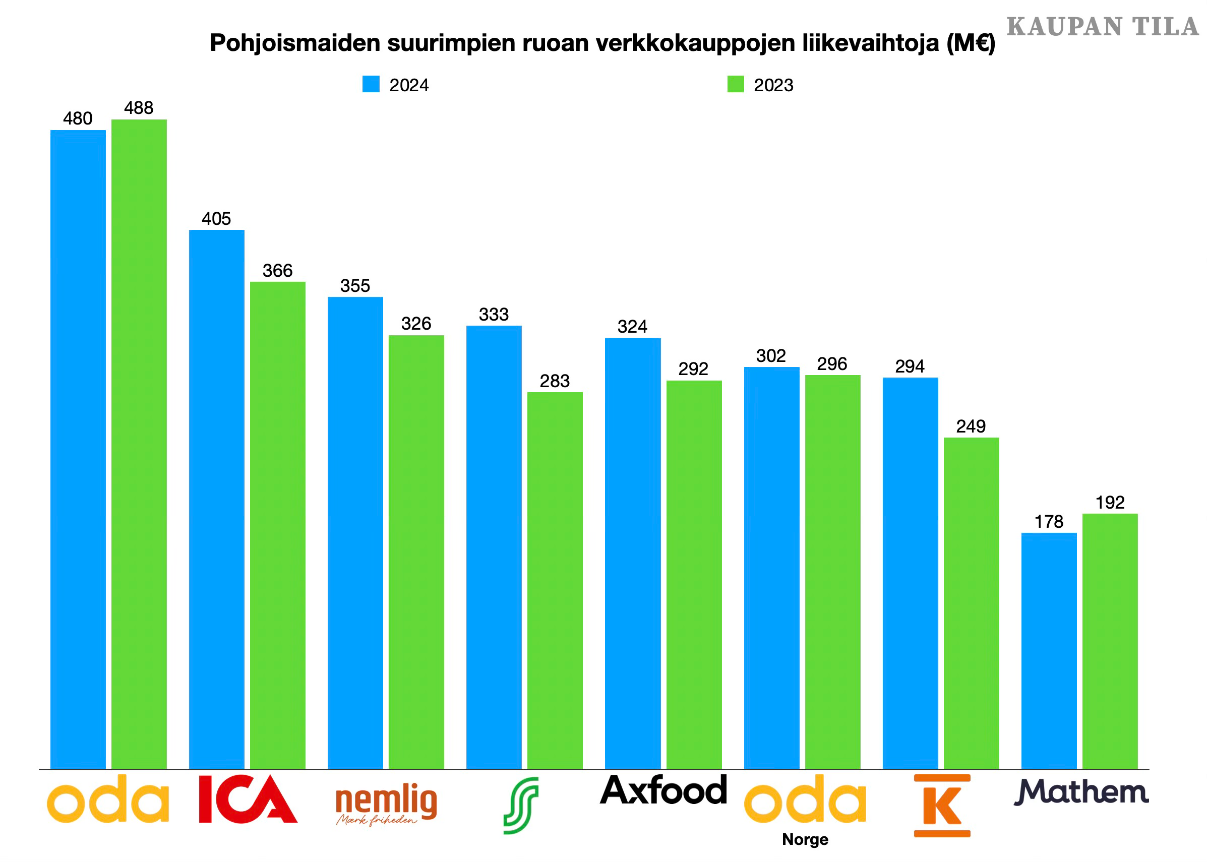 Pohjoismaiden suurimpana ruoan verkkokaupan yrityksenä jatkaa Oda Group siitä huolimatta, että myynti laski Mathemin kujanjuoksun takia. Mathem olikin ainoa yrityksistä, jonka myynti laski viime vuonna. Mathemin syöksykierrettä yritetään oikaista Odan Norjan toimintojen tuomisella ruotsalaisten käyttöön.