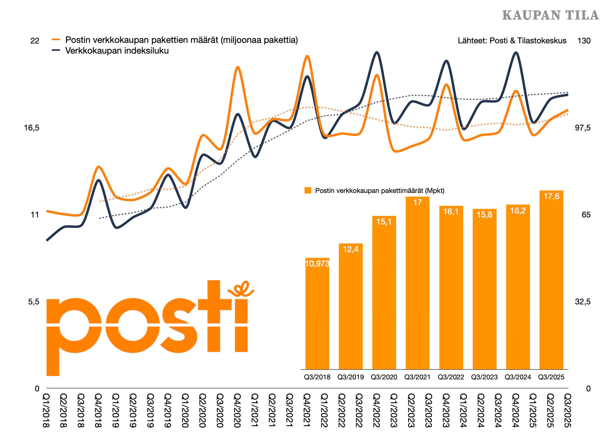 Suomen suurimman verkkokaupan pakettien kuljettajan Posti Group Oyj sekä puhtaiden kotimaisten verkkokauppojen luvut (Tilastokeskus - Statistics Finland mukaan) ovat menossa parempaan suuntaan.
