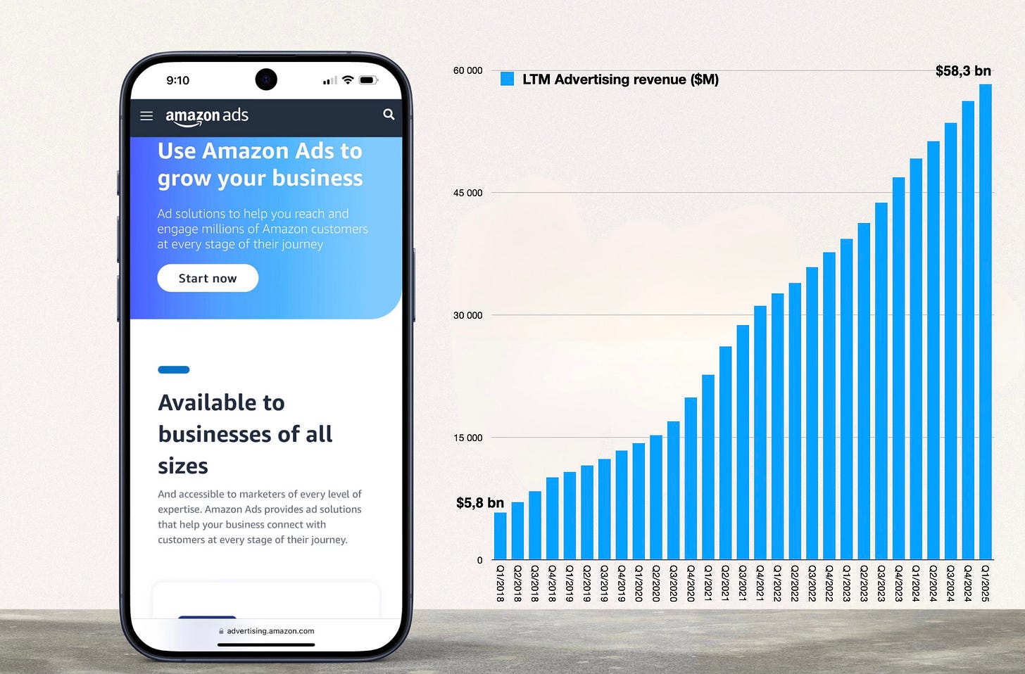 Viimeisen 12 kuukauden aikana mainosliiketoiminta on tuottanut Amazonille hulppeat $58 miljardia. Jotkut analyytikot uskovat sen tuottavan yhtiölle enemmän rahaa kuin paljon puhutun pilvipalvelu AWS:n tuottamat $42 miljardia liiketulosta.