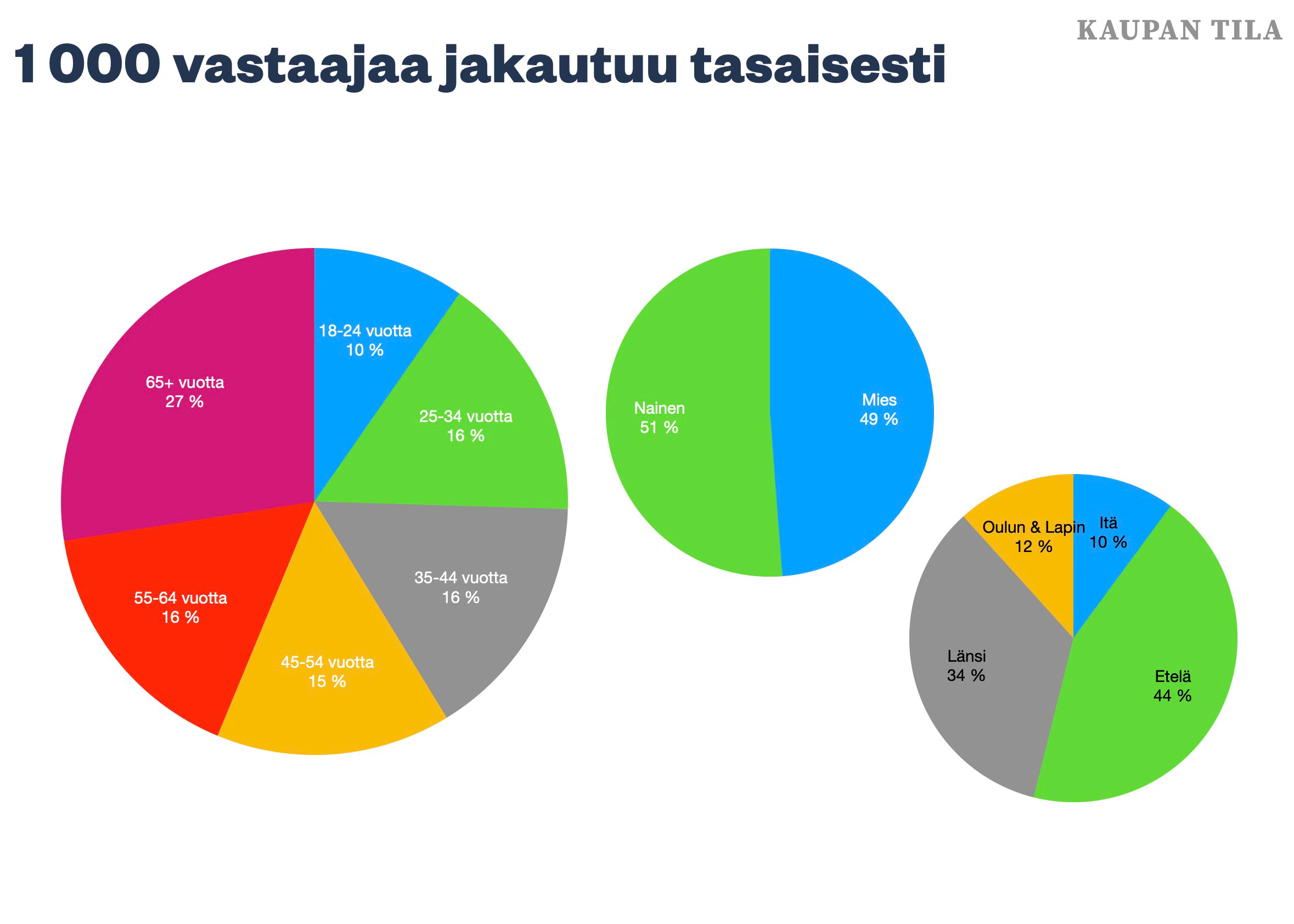 Kyselyn tulokset voi jakaa kolmeen pääosaan. Ensimmäisessä osiossa käsitellään ruokakauppaa, suomalaisten rahankäyttöä eri ketjuissa sekä tyytyväisyyttä ketjuihin. Toisessa osiossa käydään läpi vastaajien näkemyksiä erikoiskaupan ketjuista. Niitä tiivistetään NPS-maailmasta tutun skaalan avulla. Toisessa osiossa katsotaan myös millä erikoiskaupan ketjuilla on eniten faneja.