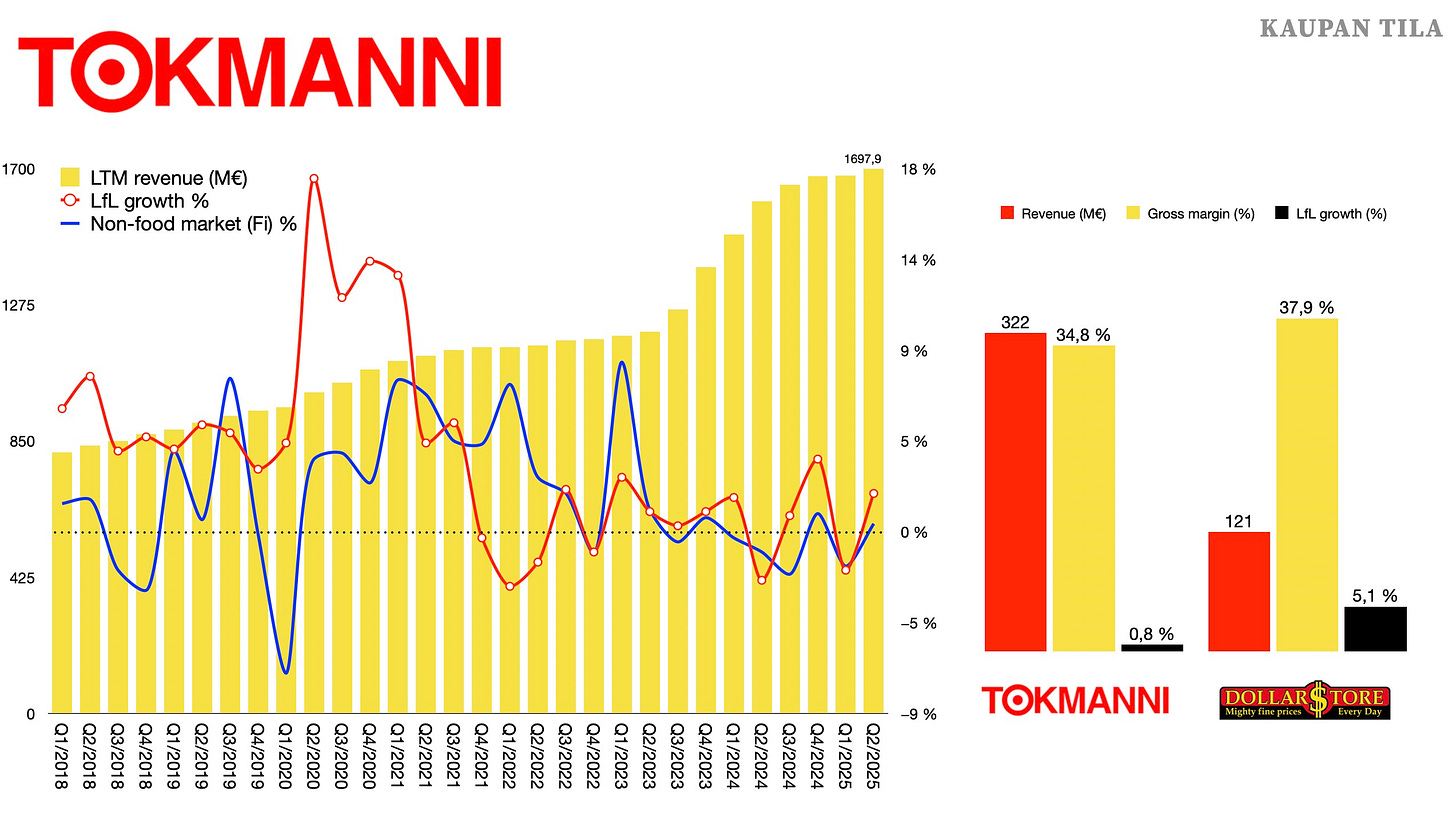 Viime aikoina sijoittajien hampaissa ollut halpakauppayhtiö Tokmanni raportoi toisen vuosineljänneksen tuloksestaan. Yhtiön myynti kasvoi +4,8 % erityisesti Dollarstore -segmentin vahvan kasvun vetämänä.